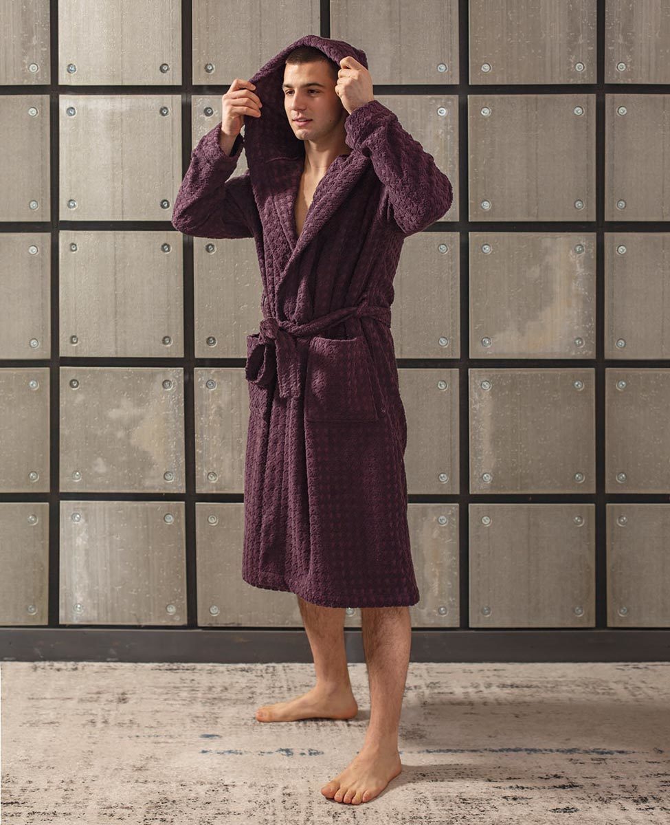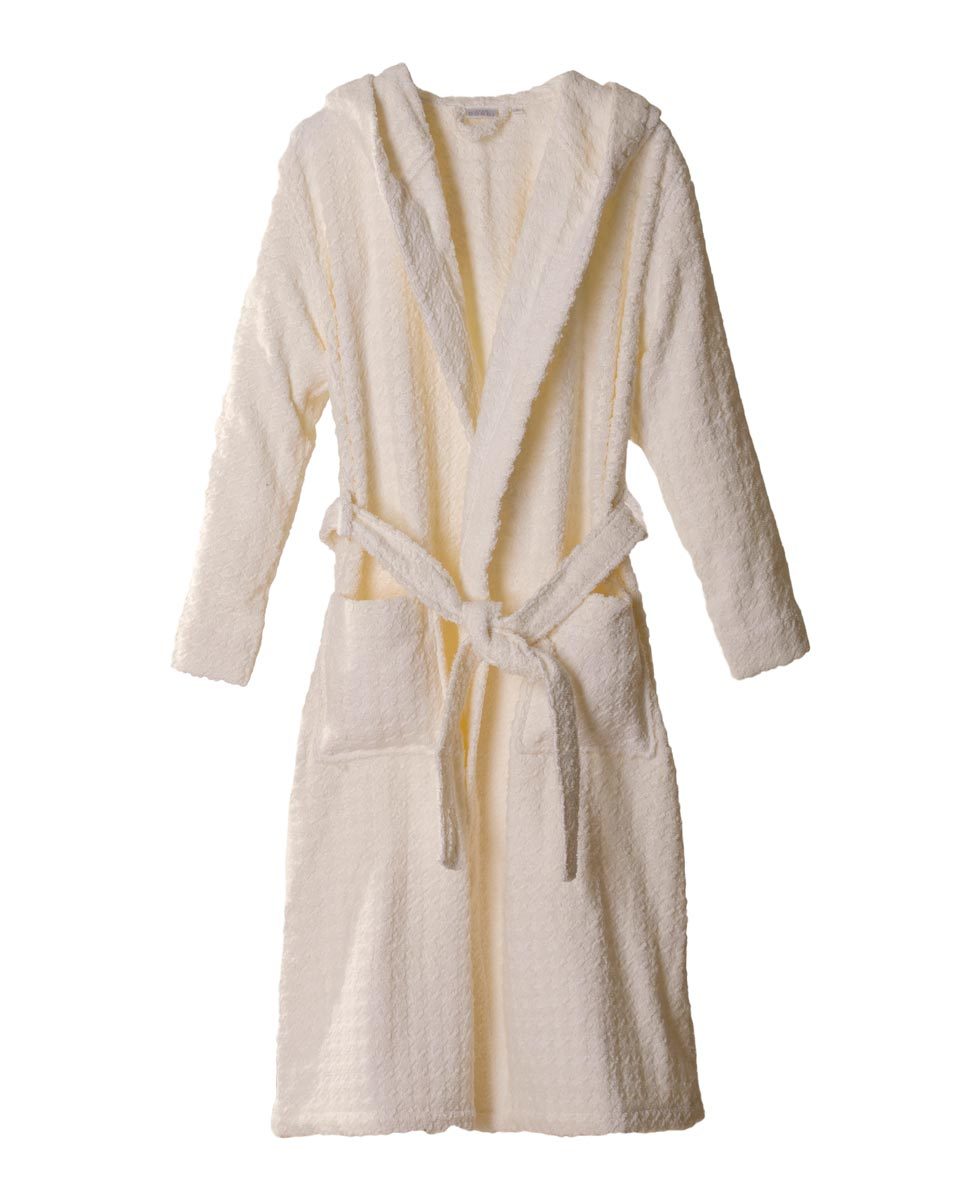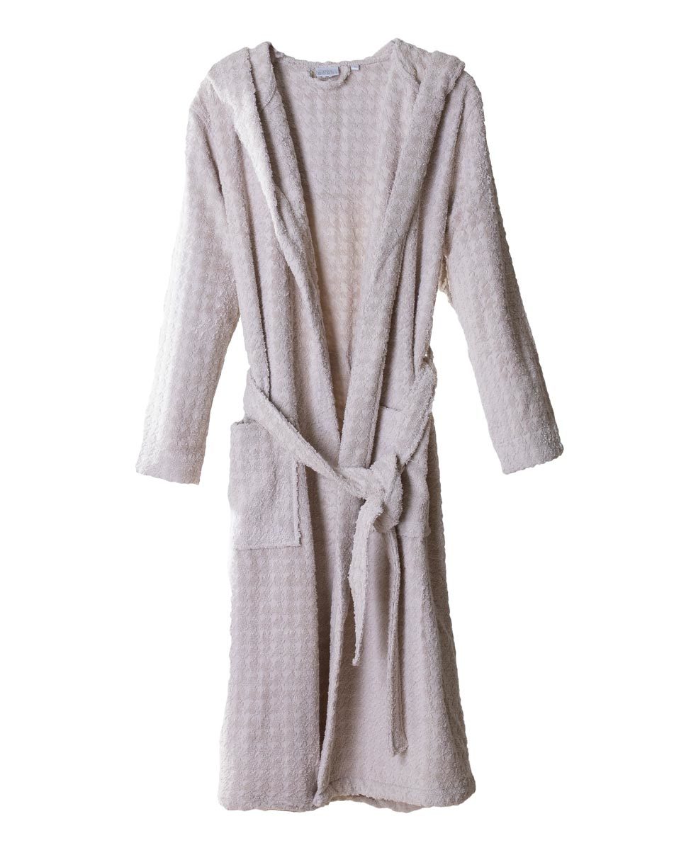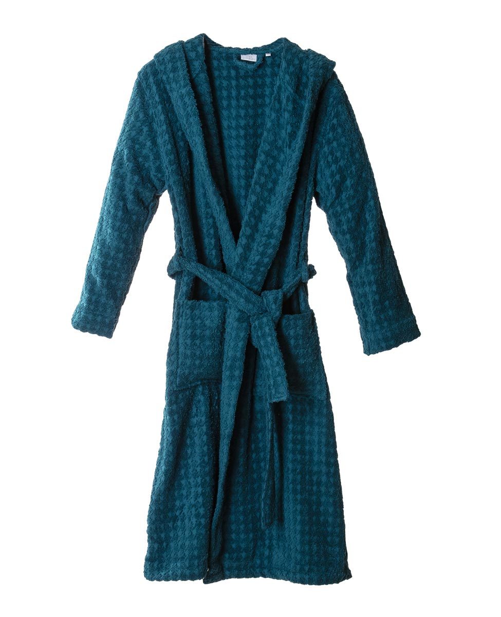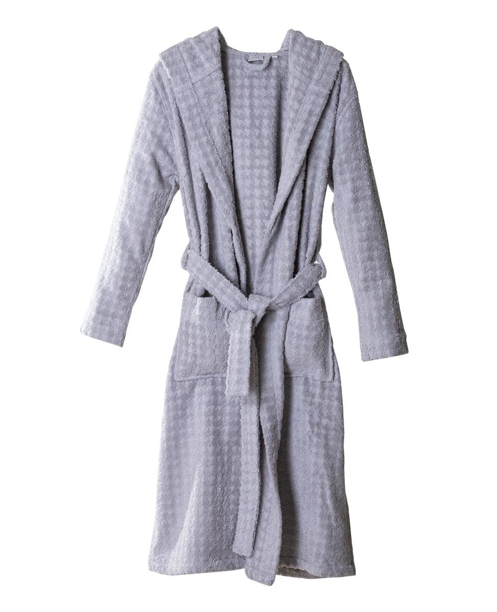 Accappatoio unisex con cappuccio in puro cotone con trama jacquard a motivo "pied de poule".