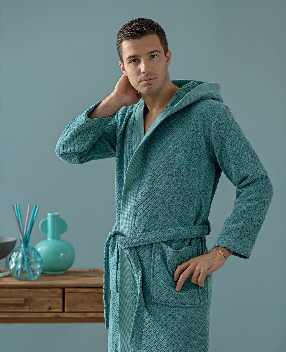 Accappatoio unisex con cappuccio in cotone jacquard tinta unita e logo Dondi Home ricamato.