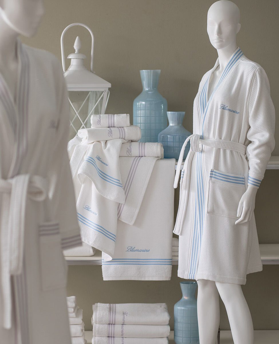 Accappatoio modello kimono in spugna di cotone a nido d’ape tinta unita.