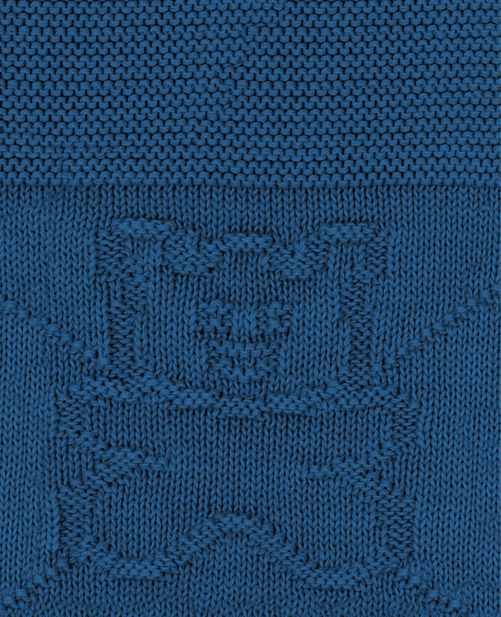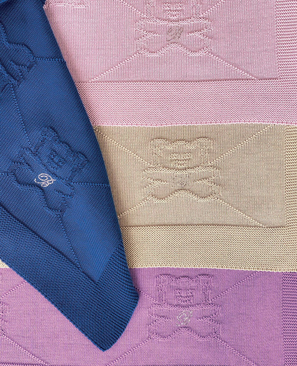 Copertina per culla e carrozzina con disegno in jacquard e logo in cristalli.