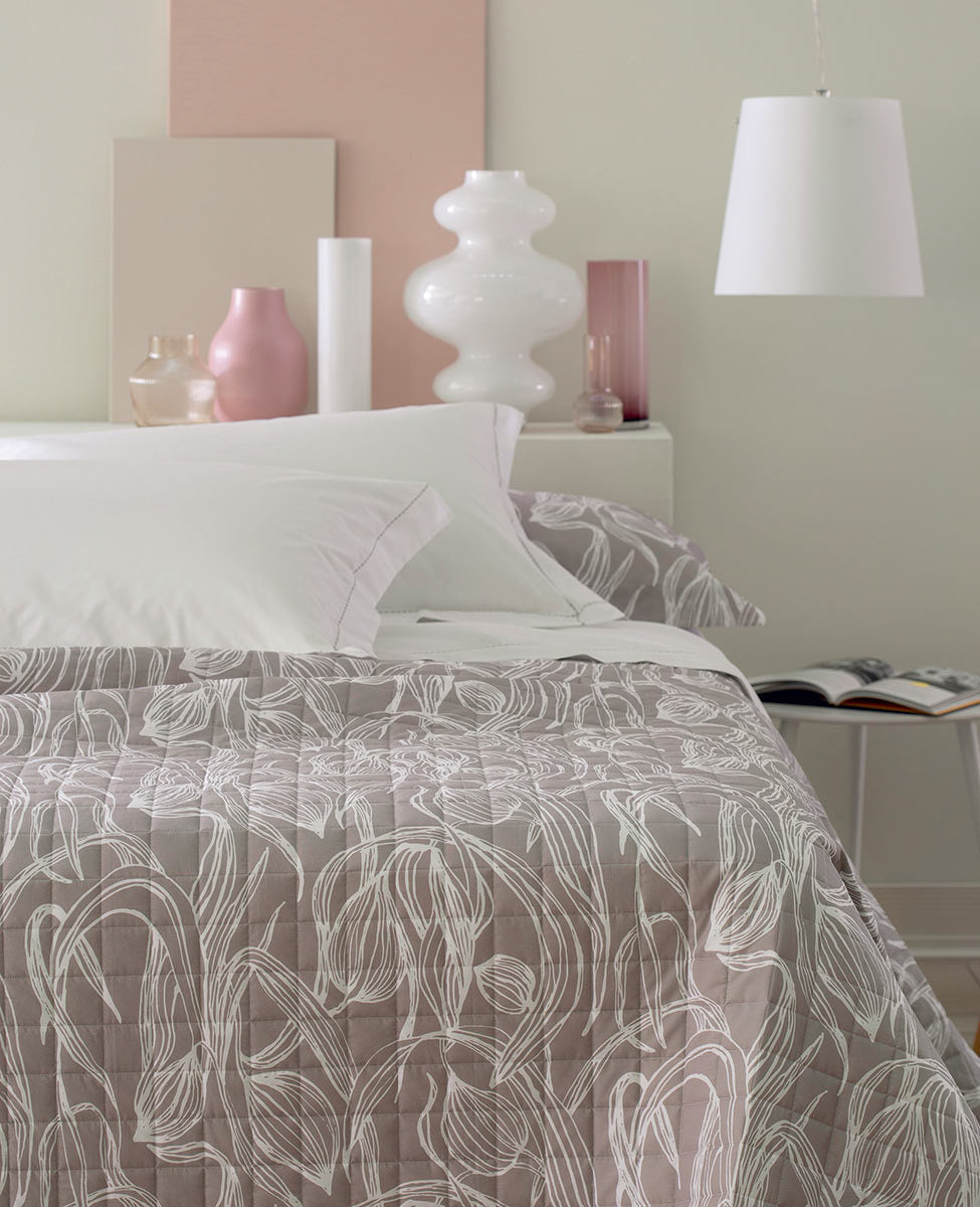 Fresco copriletto trapuntato per letto singolo o matrimoniale con disegno stampato in negativo.