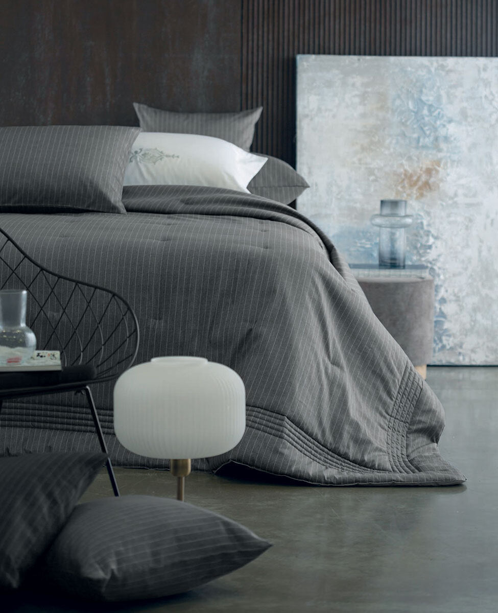 Fresco copriletto matrimoniale trapuntato con disegno stampato all-over.