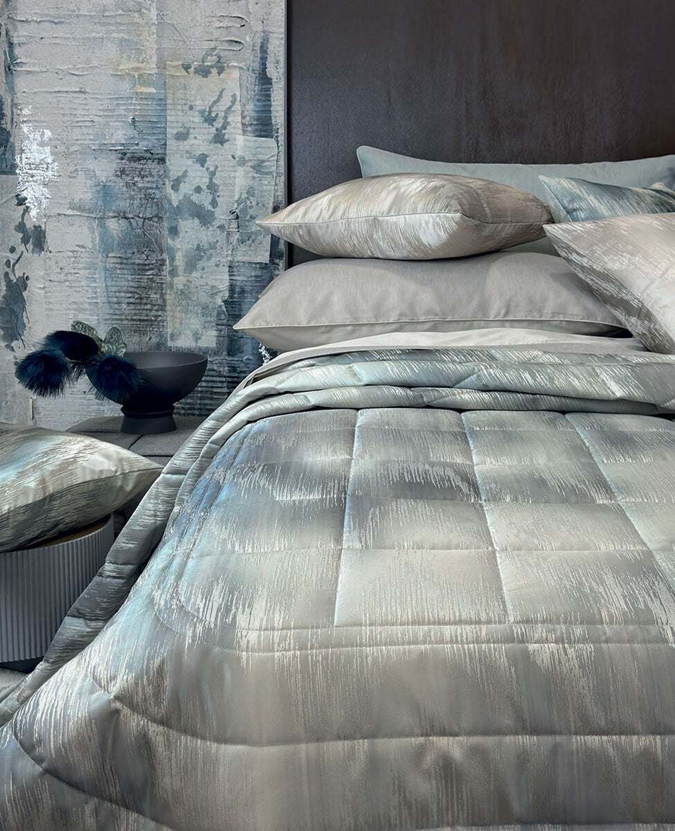 Elegante copriletto trapuntato matrimoniale con trama jacquard.