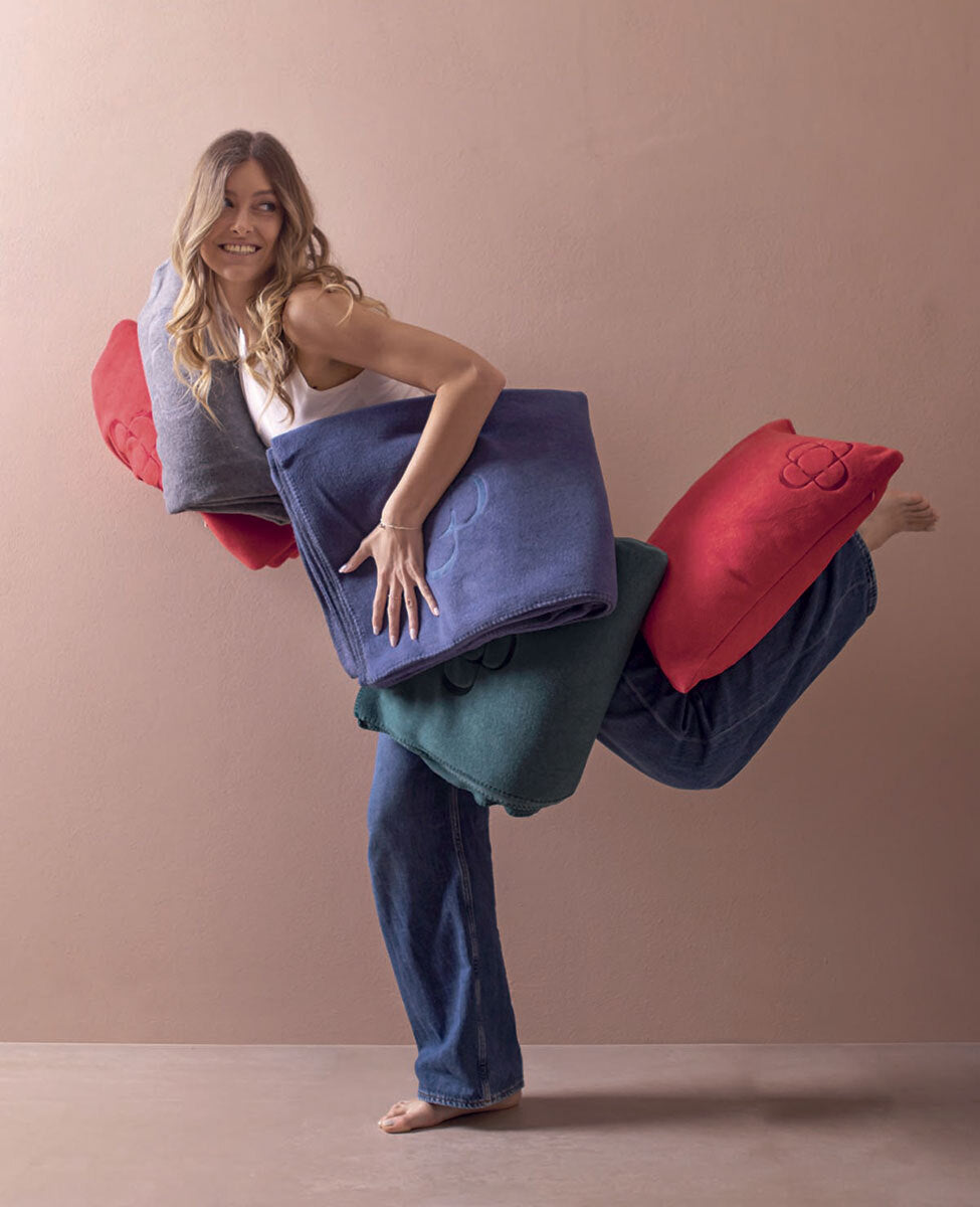 Cuscino arredo sfoderabile in soft viscosa tinta unita con logo ricamato di 12x12 cm.