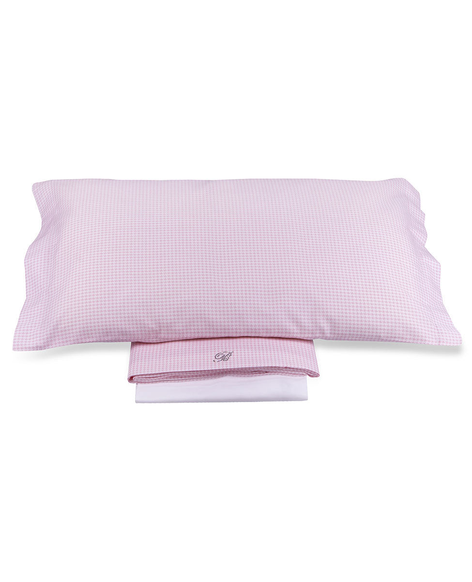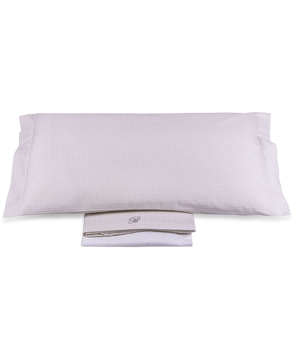 Completo lenzuola per culla con stampa pied de poule su percalle di cotone e logo Blumarine in cristalli.
