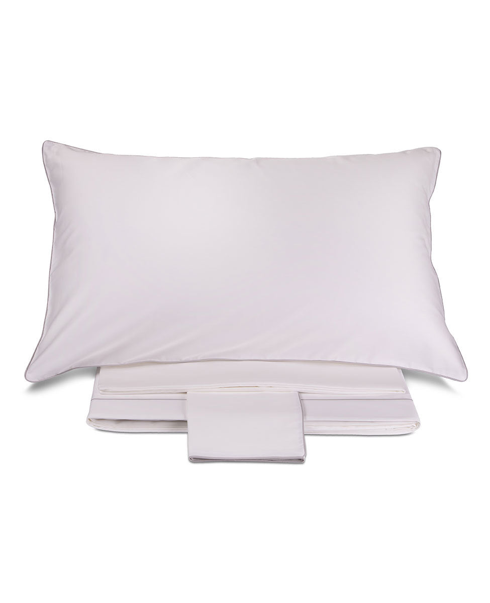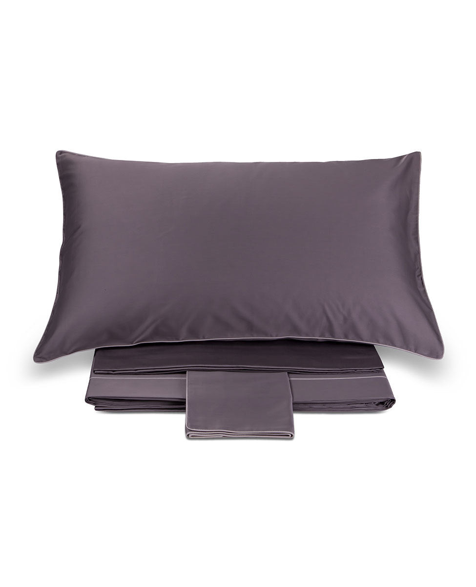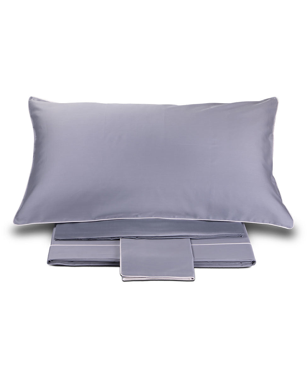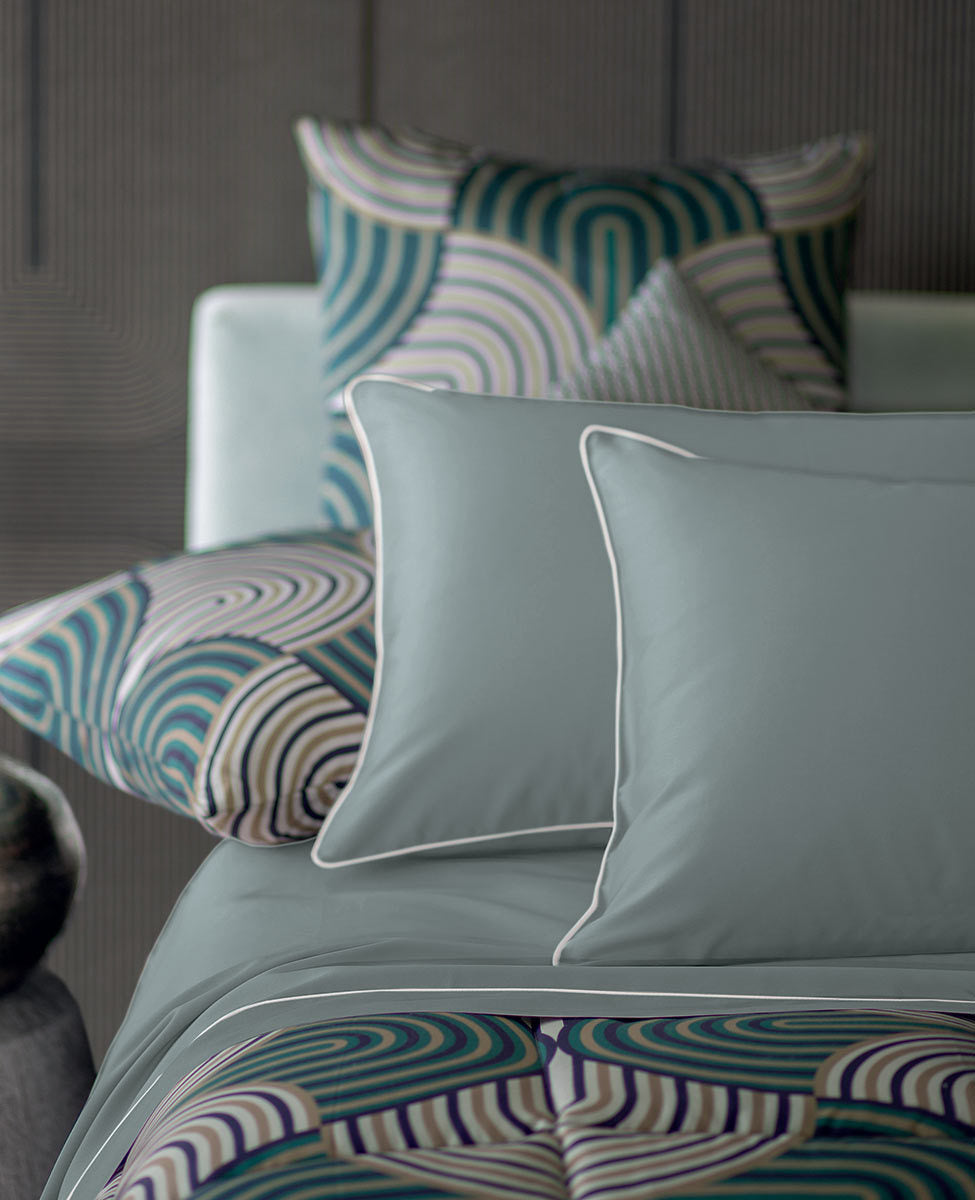 Completo lenzuola matrimoniali in tinta unita con raffinata finitura del piping a contrasto su lenzuolo e federe.