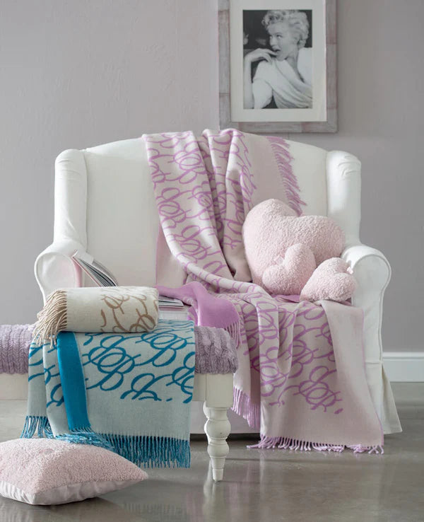 Plaid in lana jacquard con disegno piazzato, tinto in filo.