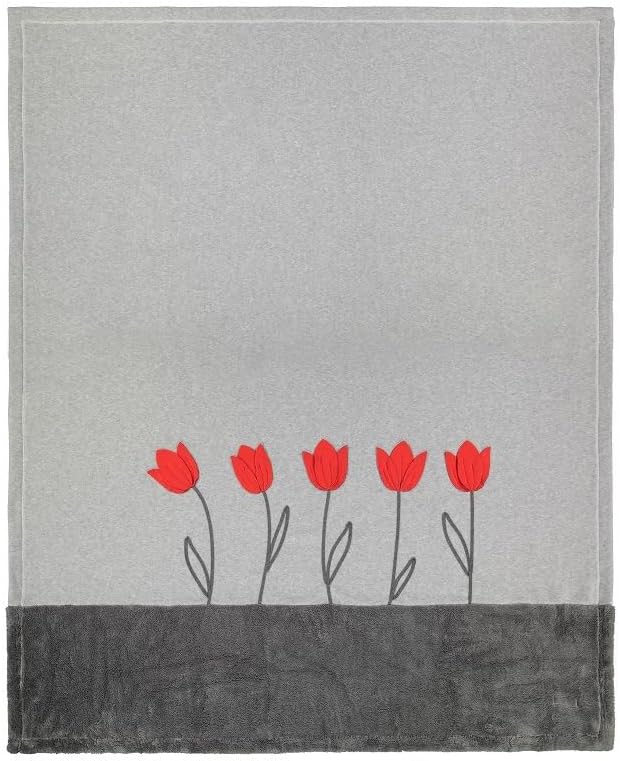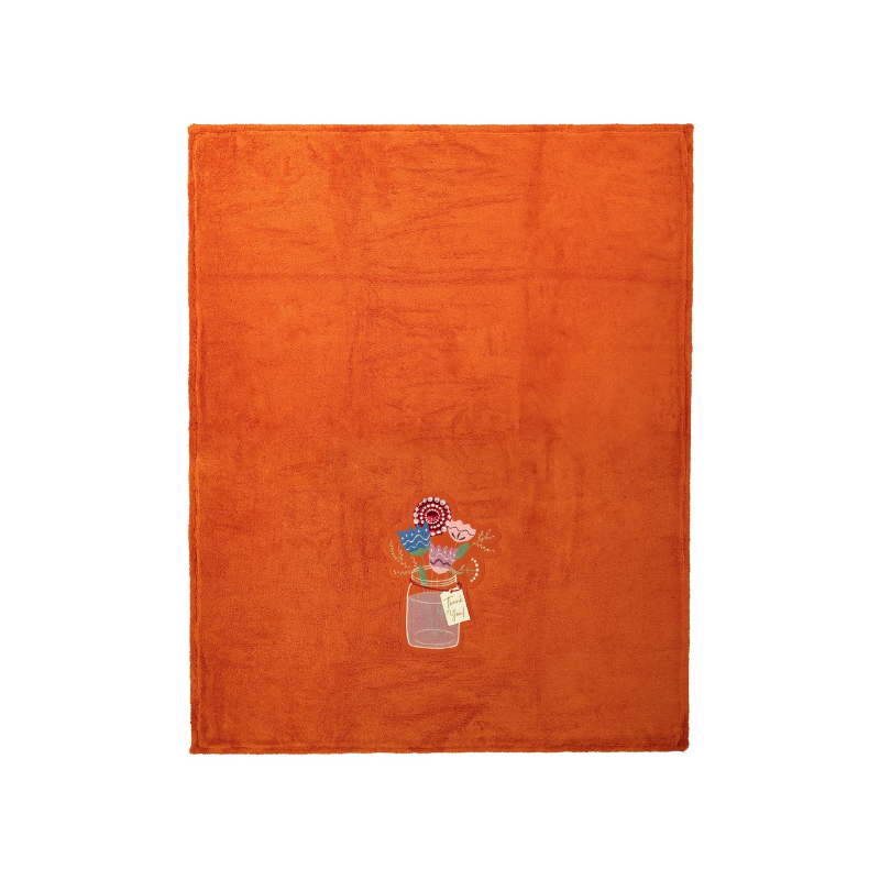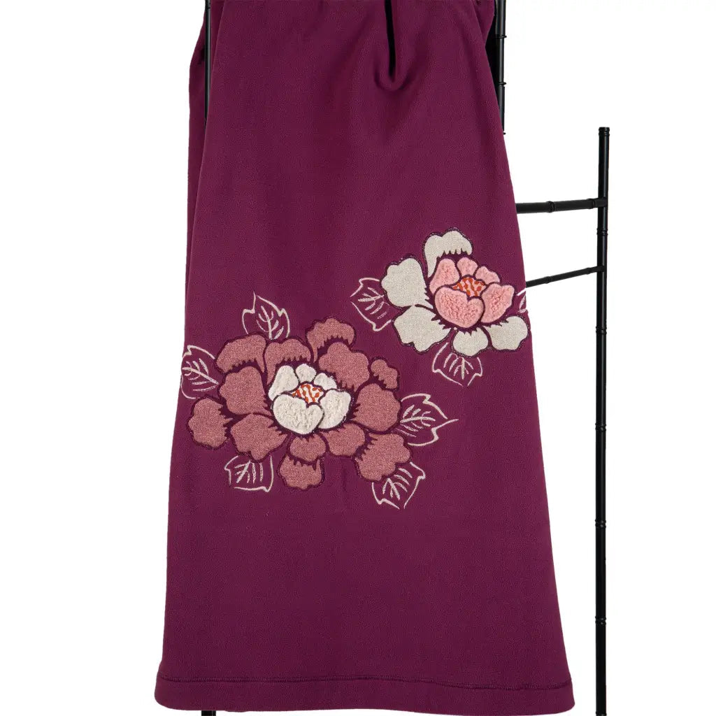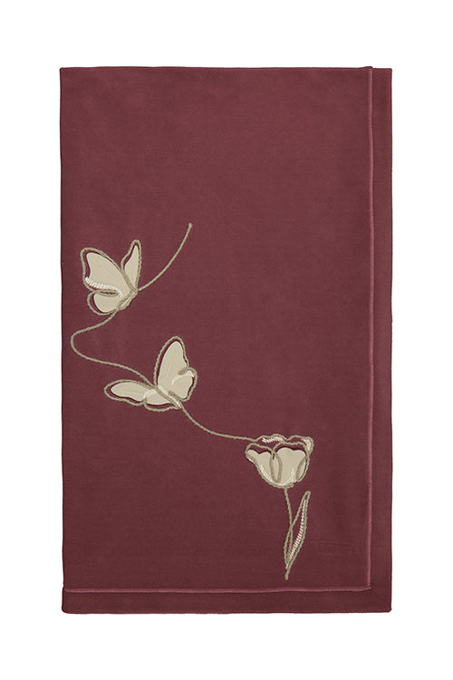 Morbido plaid dal gusto delicato in caldo pile con fiori laserati applicati e ricamati nel tessuto di base.