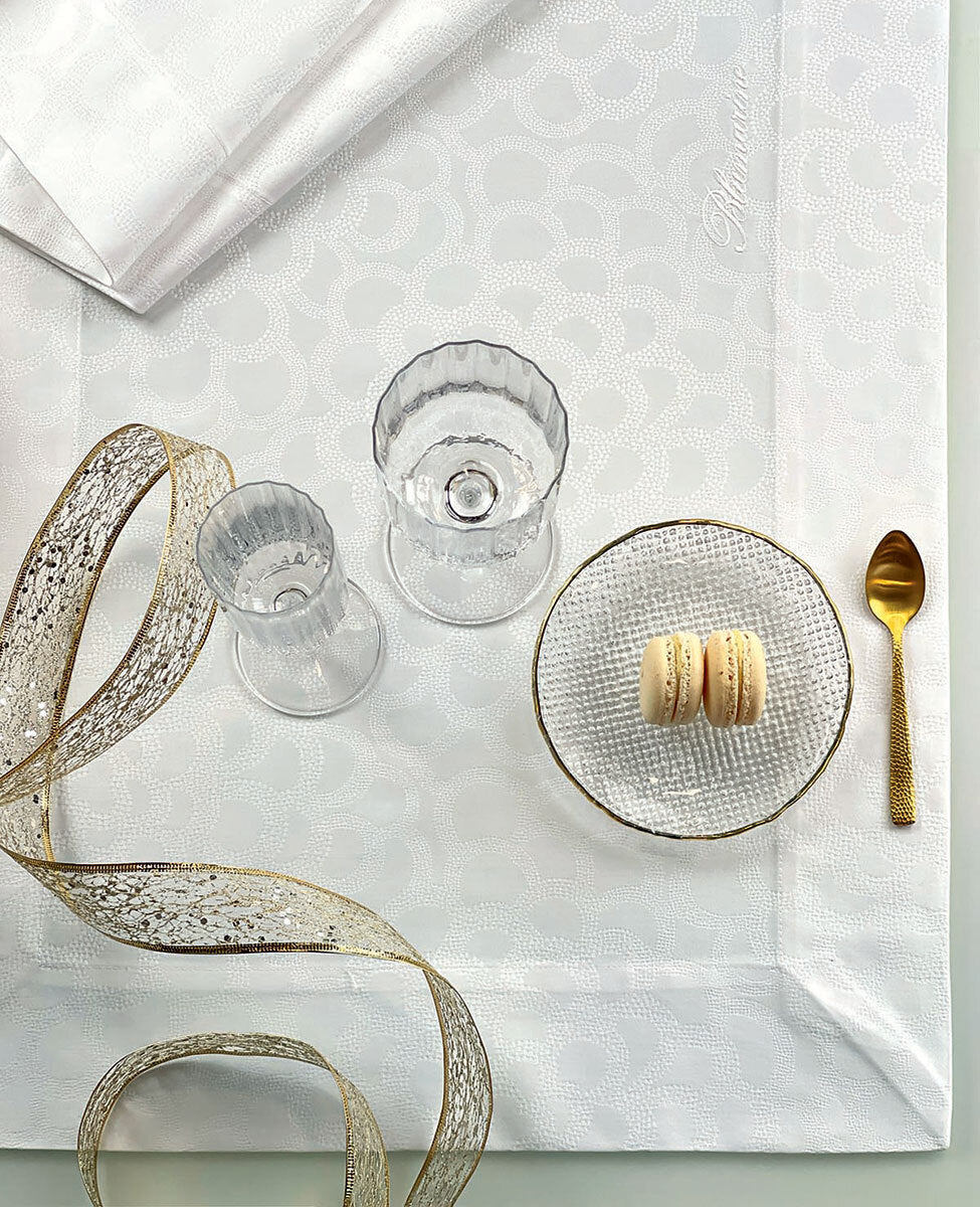 Runner tinta unita in fiandra jacquard con motivo definito da semicerchi ad effetto martellato. Logo Blumarine ricamato.