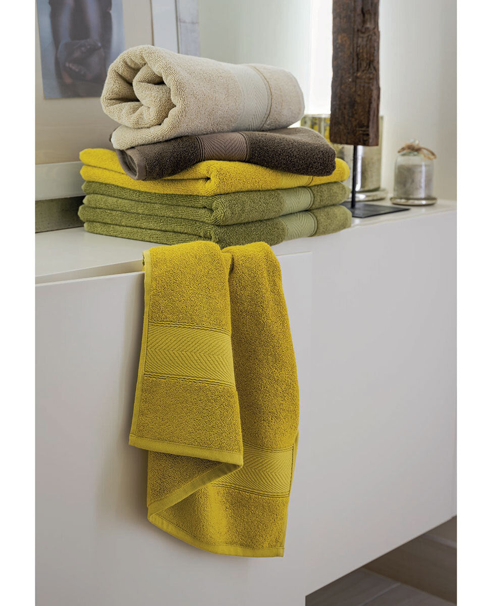 Coppia 1+1 di asciugamani in bambù e spugna di cotone tinta unita con bordo jacquard spigato.