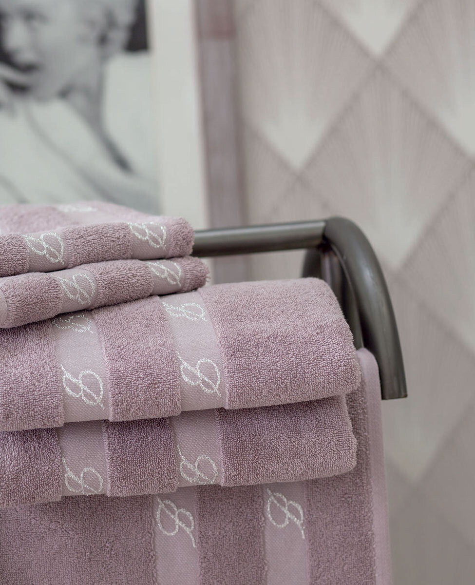 Coppia 1+1 di asciugamani tinta unita con doppia balza finale e logo Blumarine in jacquard tinto filo in lurex.