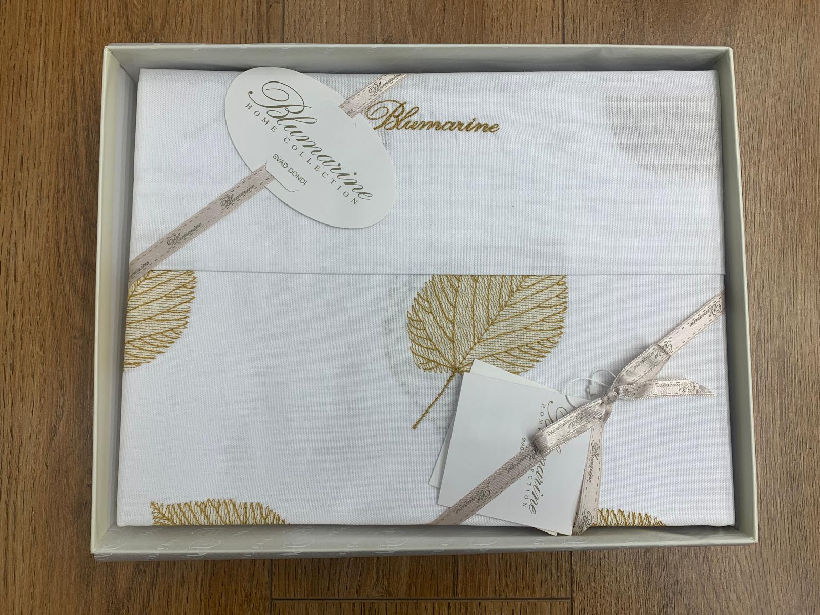 Elegante tovaglia tinta unita con ricamo piazzato e logo Blumarine ricamato.