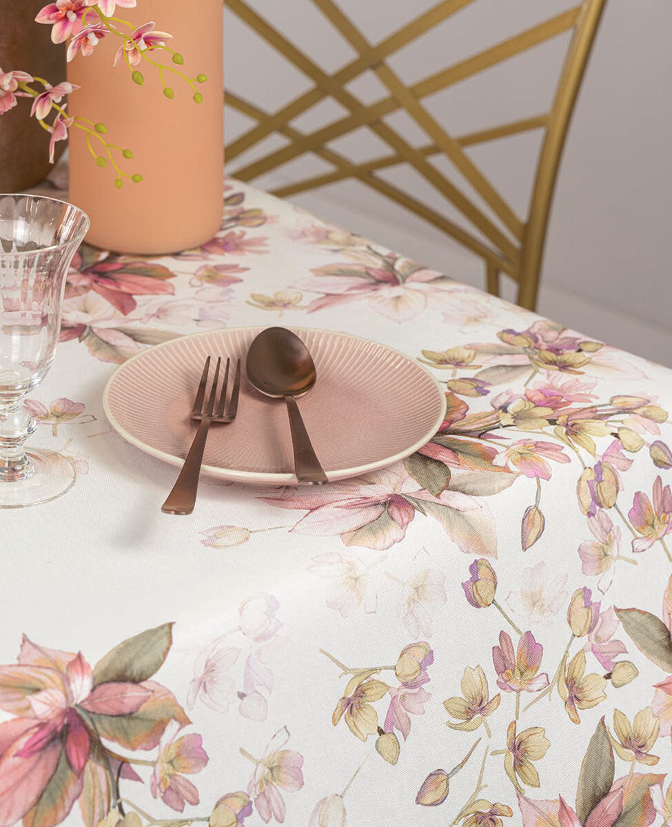 Tovaglia in panama con stampa piazzata per 10/12 posti, 170x270 cm.