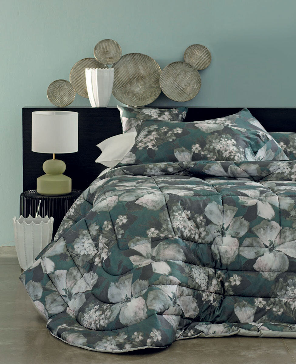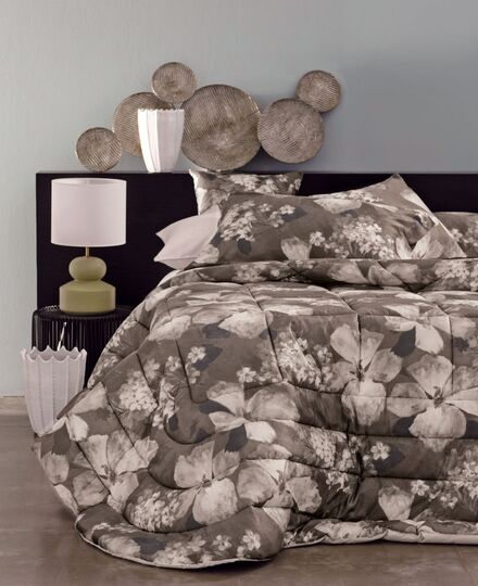 Calda trapunta matrimoniale con disegno stampato all-over.