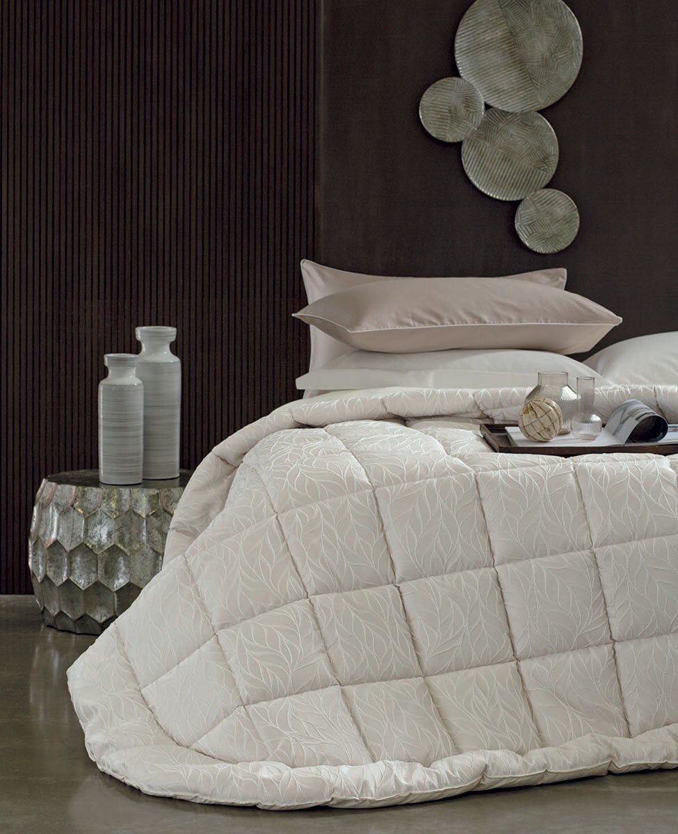 Calda e avvolgente trapunta matrimoniale con disegno jacquard.