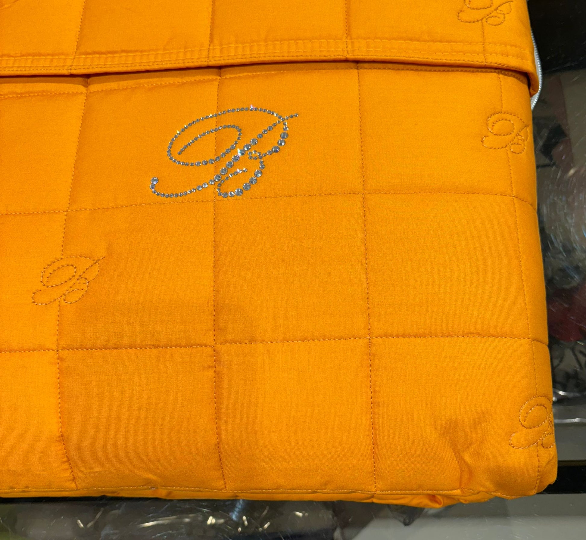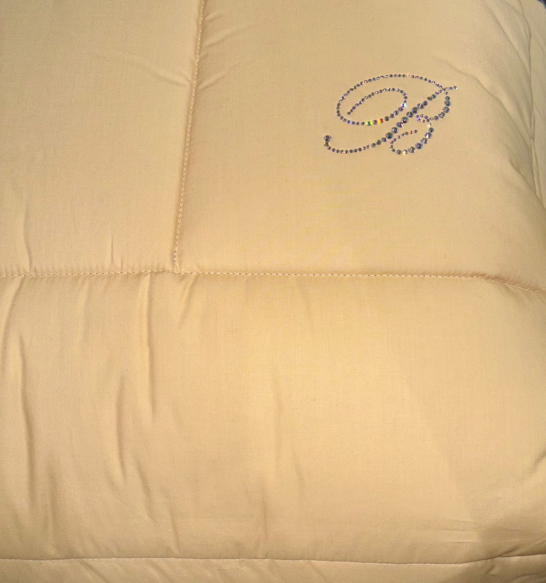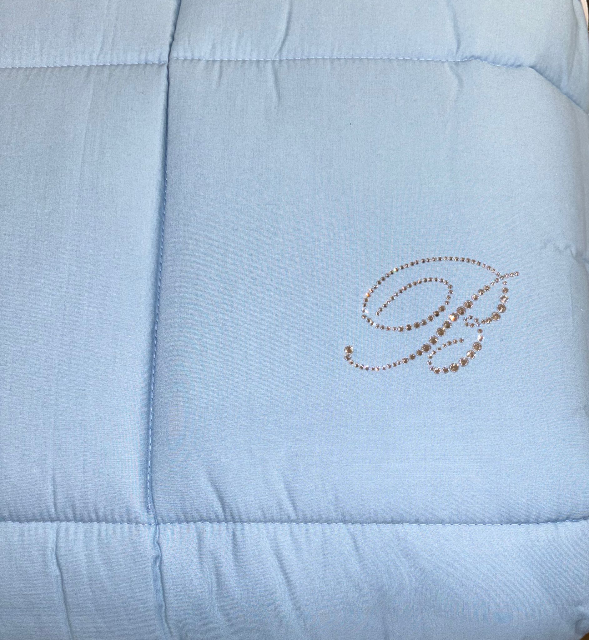 Elegante trapunta matrimoniale in 100% percalle di cotone tinta unita con logo Blumarine in cristalli Swarovski.