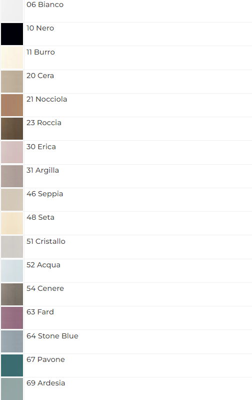 Tante varianti colore disponibili, dai delicati toni dei colori cera e burro, ai più forti dei colori cera, erica e roccia.