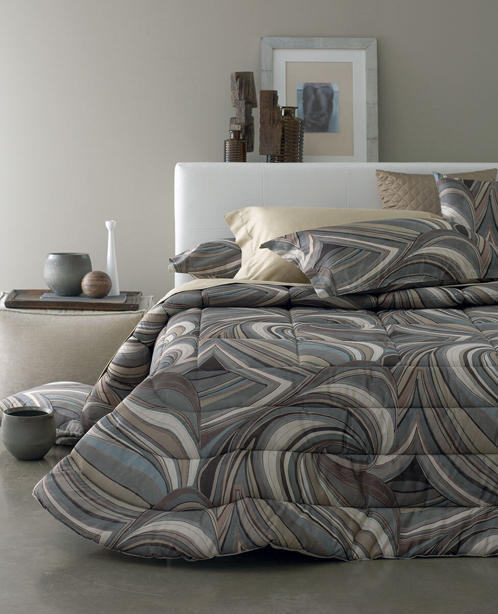 Calda trapunta matrimoniale in raso di cotone con disegno stampato all-over.