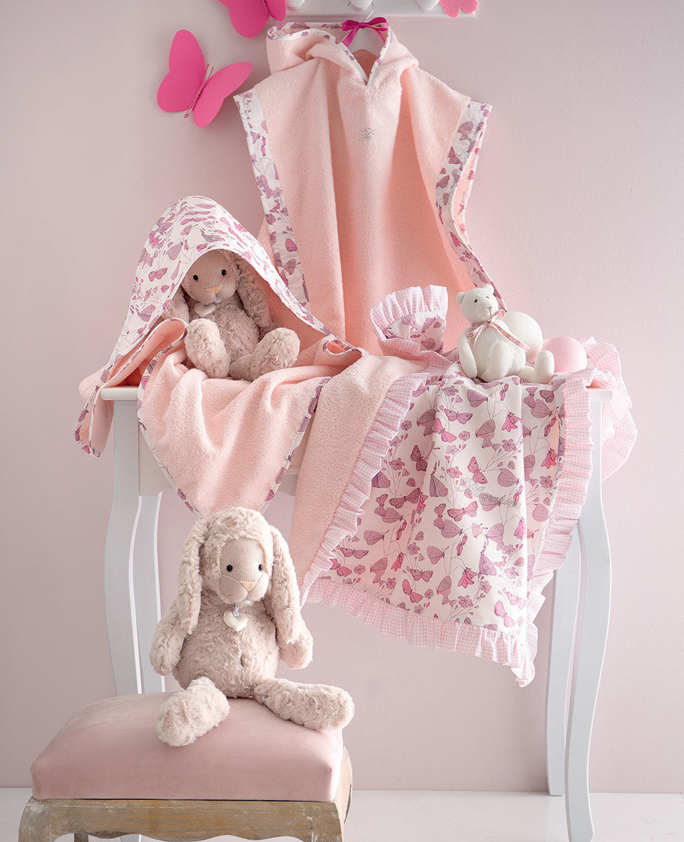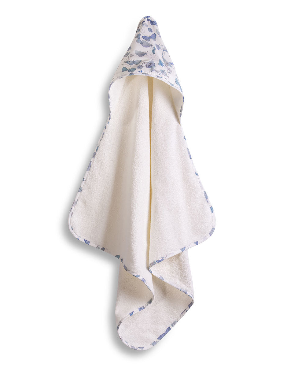 Triangolo in spugna con cappuccio profilato con sbieco e logo Blumarine in cristalli.